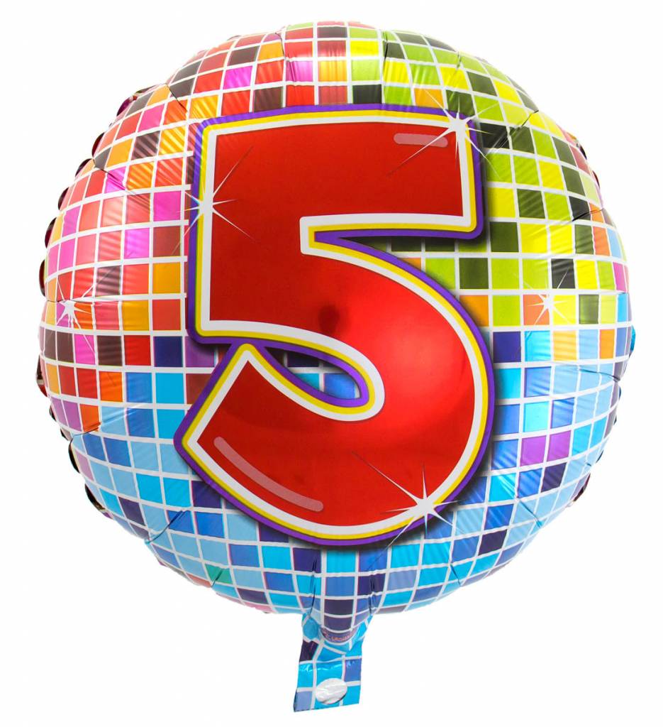 - 5 jaar Birthday Blocks folieballon - Doorsnede ± 43cm - Inhoud: Leeg (standaard) - Geschikt voor: Helium en lucht - Zweeftijd (helium): 1 tot 2 weken - Materiaal: Folie