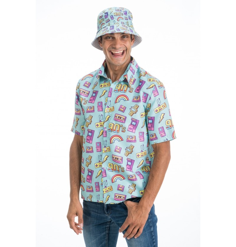- 90's Blouse Blauw Michael- Materialen: 100% Polyester- Beschikbare maten: M, L en XL