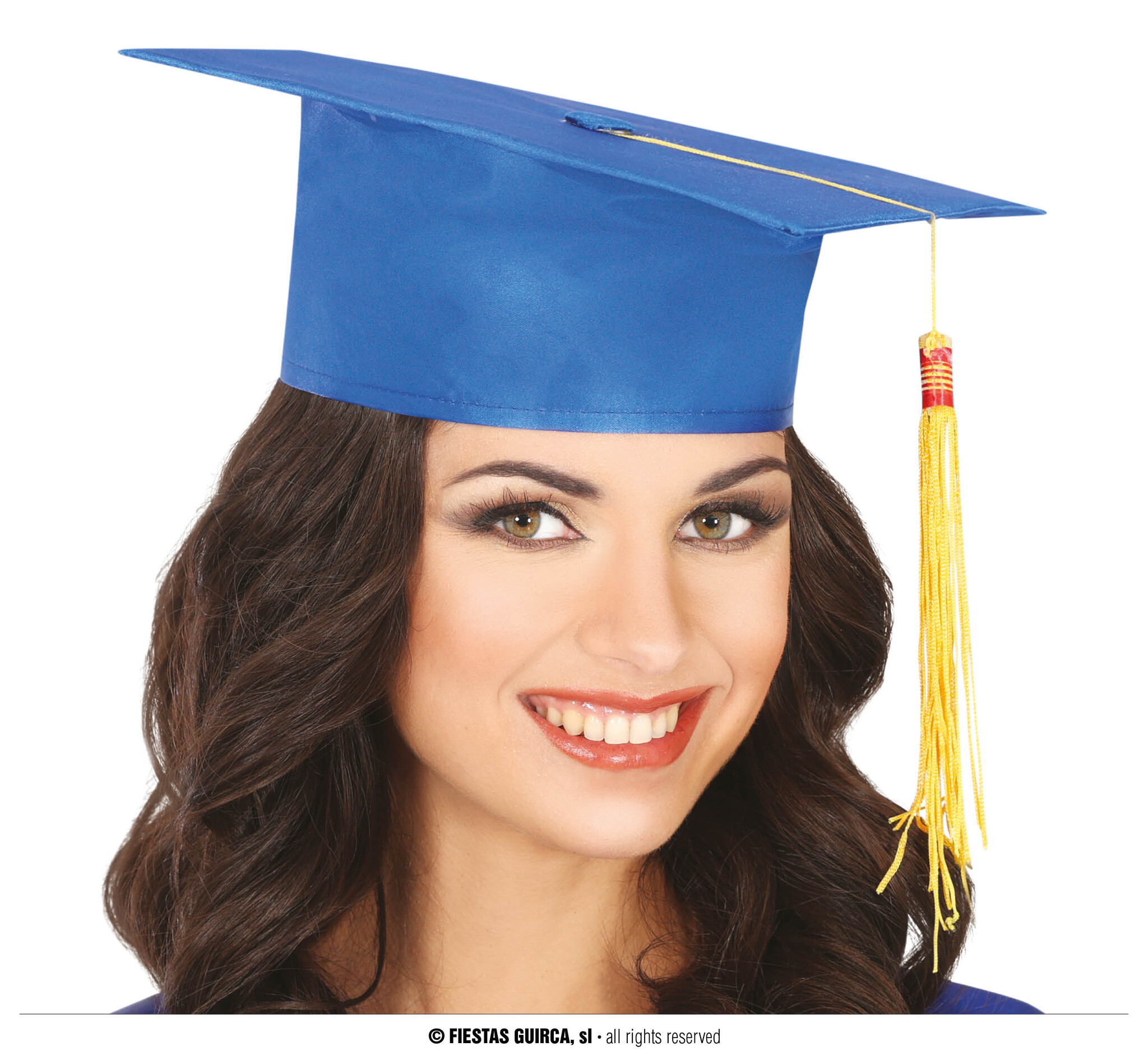 - Afstudeerhoed Blauw- Bestaande uit: 1 Hoed met tassel- Materialen: 100% Polyester