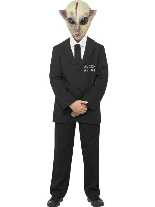 -Alien Agent halloween pak bestaande uit: Jasje met mock shirt en het Alien Masker