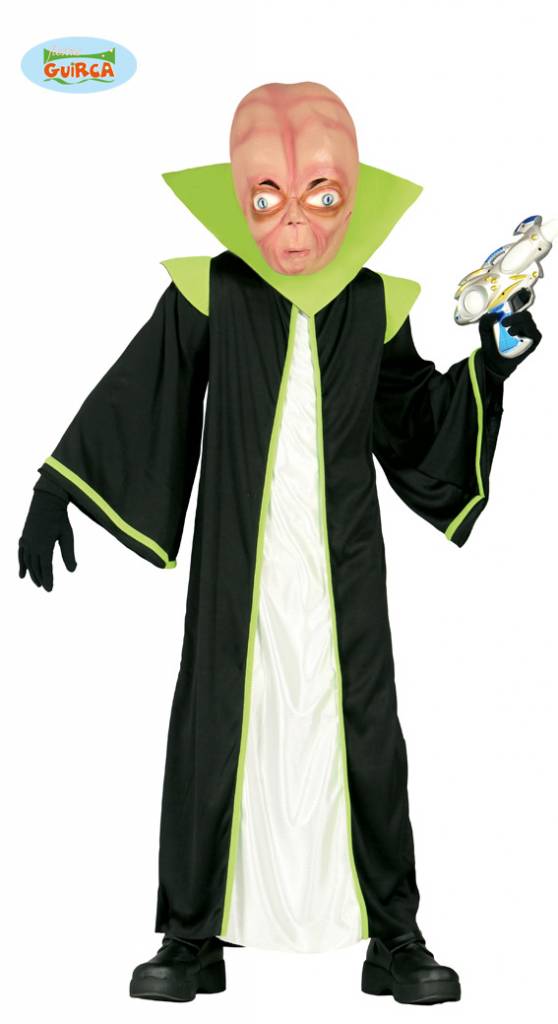 - Alien verkleedkostuum kind- Bestaande uit: Gewaad en losse kraag. Voorzien van klittenband- Beschikbare maat: 5-6 JaarLet op! Masker en pistool zijn niet inbegrepen.5-6 = 105-115cm