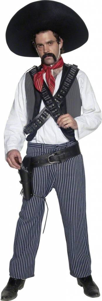 -Authentieke Western Mexicaanse Bandiet pak bestaande uit: Broek, Shirt met Vest, Sjaal