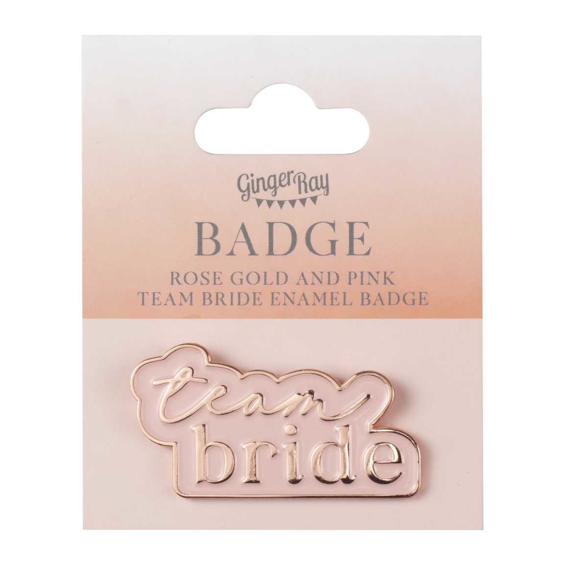 - Badge Team Bride Rose Gold Pink- Afmeting ± 28 x 53mm- Prijs per stuk