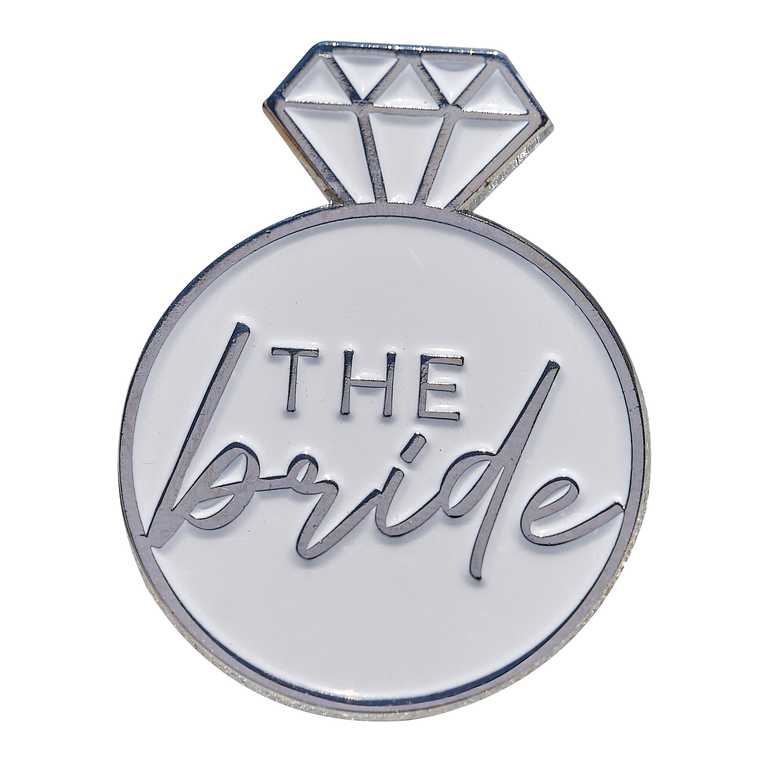 - Badge The Bride wit/zilver- Afmetingen: 3 x 2,5 cm- Kleur: Wit/zilver- Gebruik: Je kan de badge bijvoorbeeld op je kleding spelden