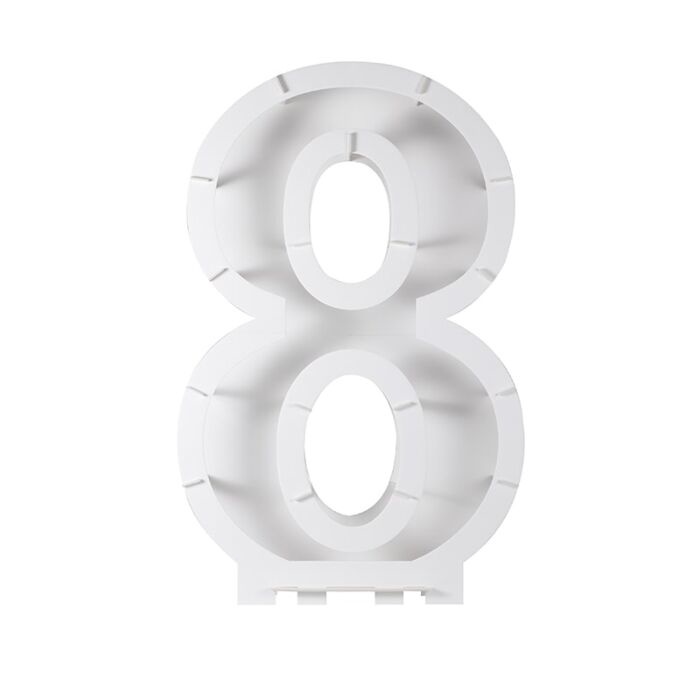 - 1x Nummer 8 ballonstandaard van 81cm x 58cm x 14cm (HxBxD)