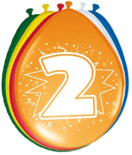 - Ballonnen '2' (8 st)- Aantal: 8 stuks per verpakking- Diameter: ± 30 cm- Inhoud: Leeg (standaard)- Geschikt voor: Lucht (bij gebruik van helium staan de cijfers ondersteboven)- Materiaal: Latex