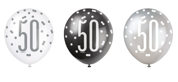 Ballonnen 50 Jaar Zwart en Zilver Glitz (6st)