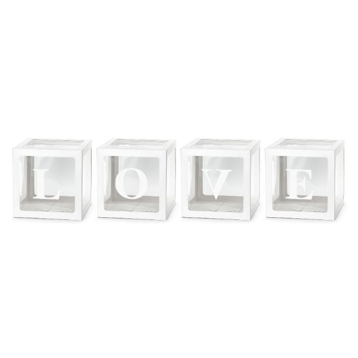- Ballonnen Box LOVE Wit- Afmetingen: 30 x 30 cm- Materialen: Plastic & stevig karton