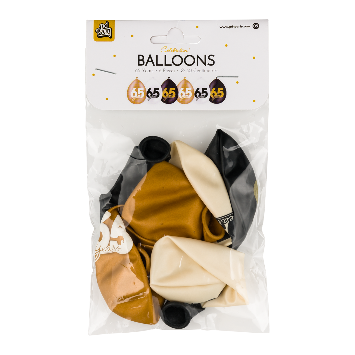 - Ballonnen Celebration 65 Jaar Wit/Goud/Zwart (6st)