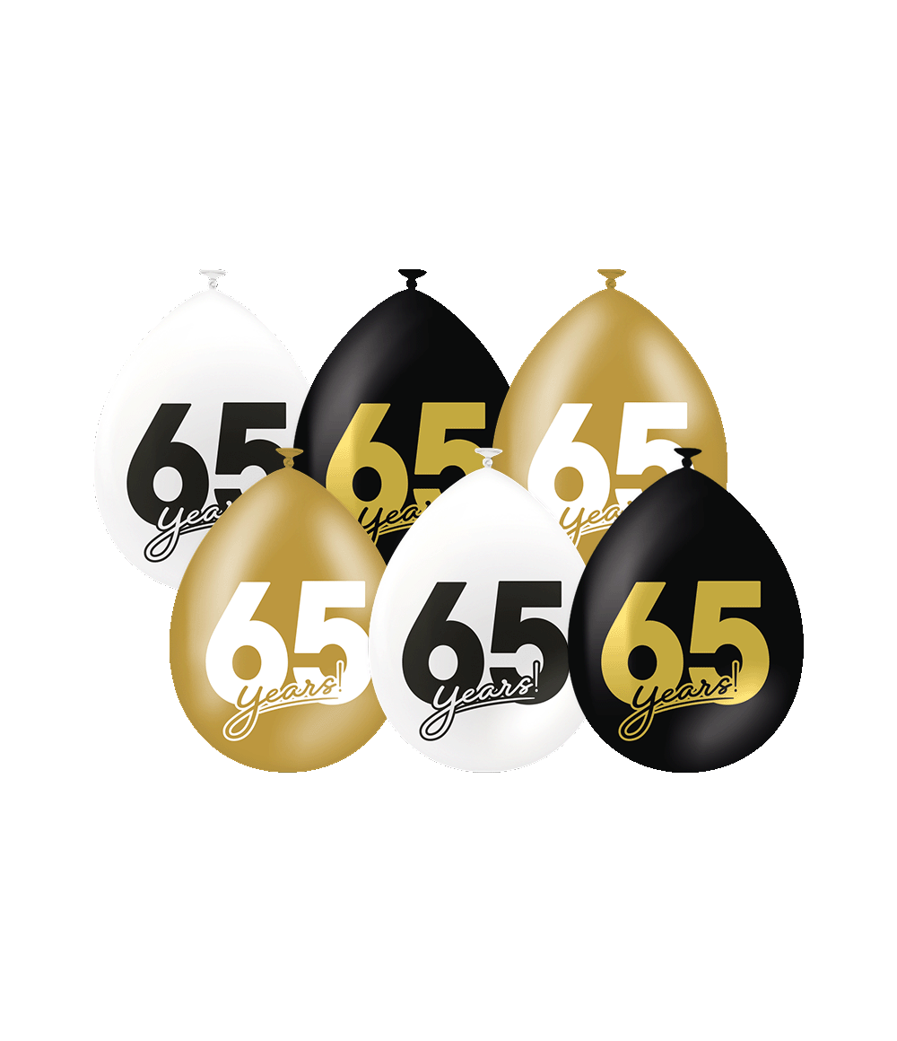 Ballonnen Celebration 65 Jaar Wit/Goud/Zwart (6st)