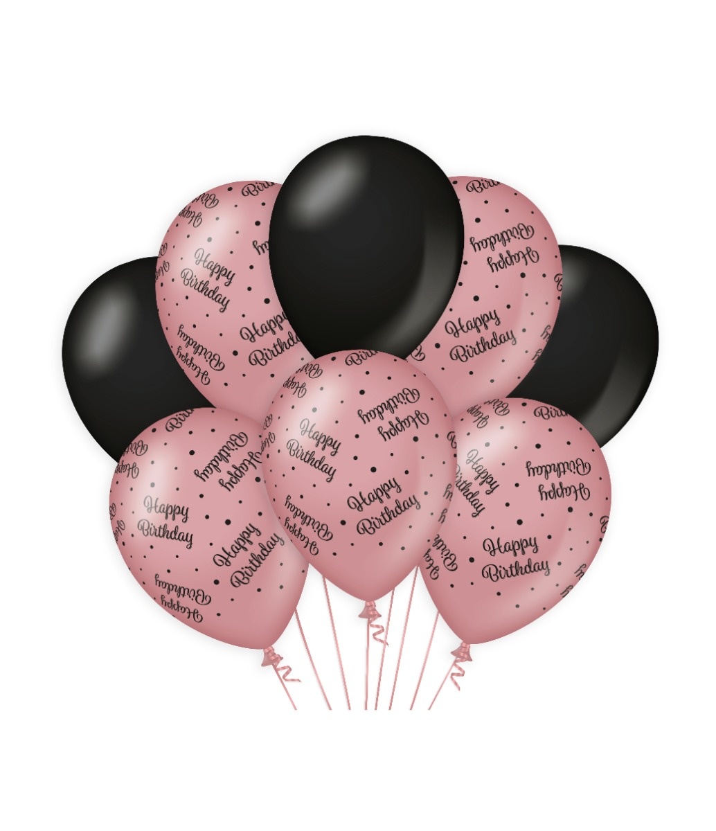 - Ballonnen Happy Birthday Roze/Zwart (8st)
