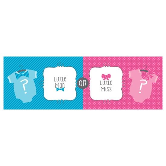 - Banner Gender Reveal Little Man Or Miss- Afmetingen: 50 x 152cm- Materiaal: Plastic- Binnen en buiten te gebruiken