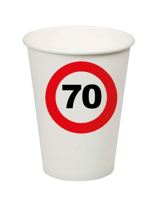 - Bekers Verkeersbord 70 Jaar- 8 stuks per verpakking- Materiaal: Karton