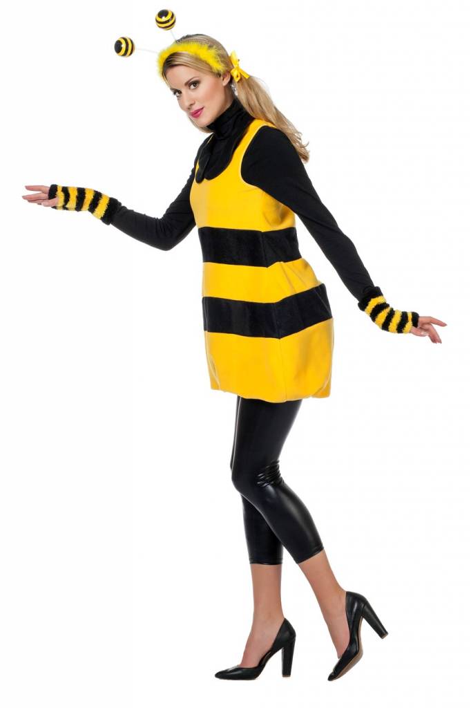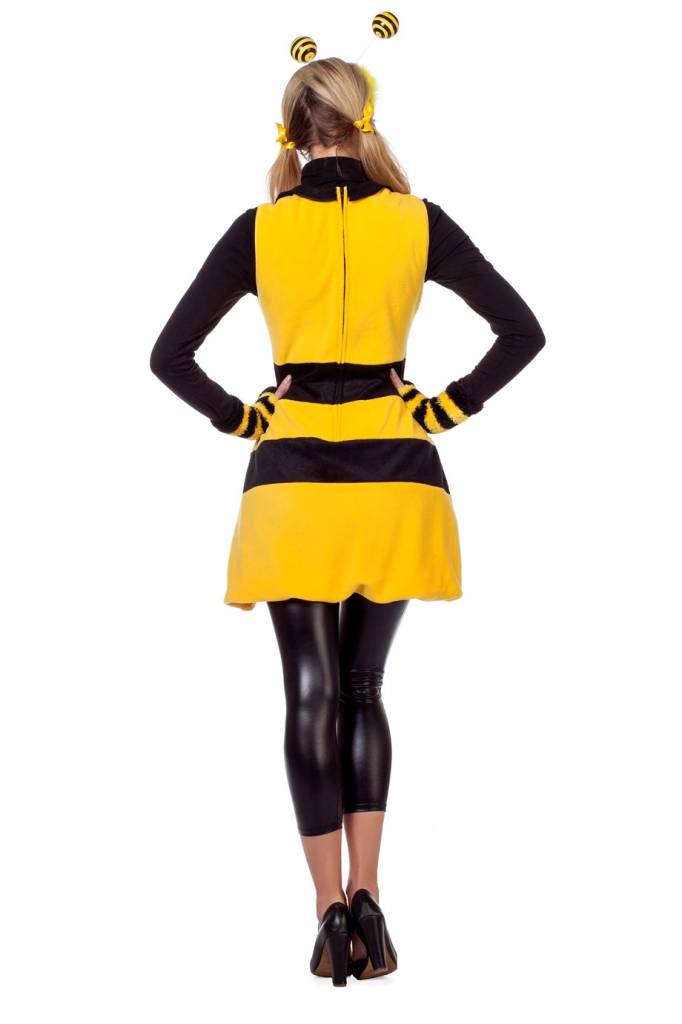 Op zoek naar een origineel dierenverkleedpak? Ga als bij! In dit prachtige fleecejurkje zul je je een echte bijenkoningin voelen! Combineer de geelzwarte jurk met een bijendiadeem, bijenvleugels en geelzwarte handschoenen voor een extra feestelijke look! Val lekker op op een dierenfeestje in dit warme maar toch ook sexy jurkje!