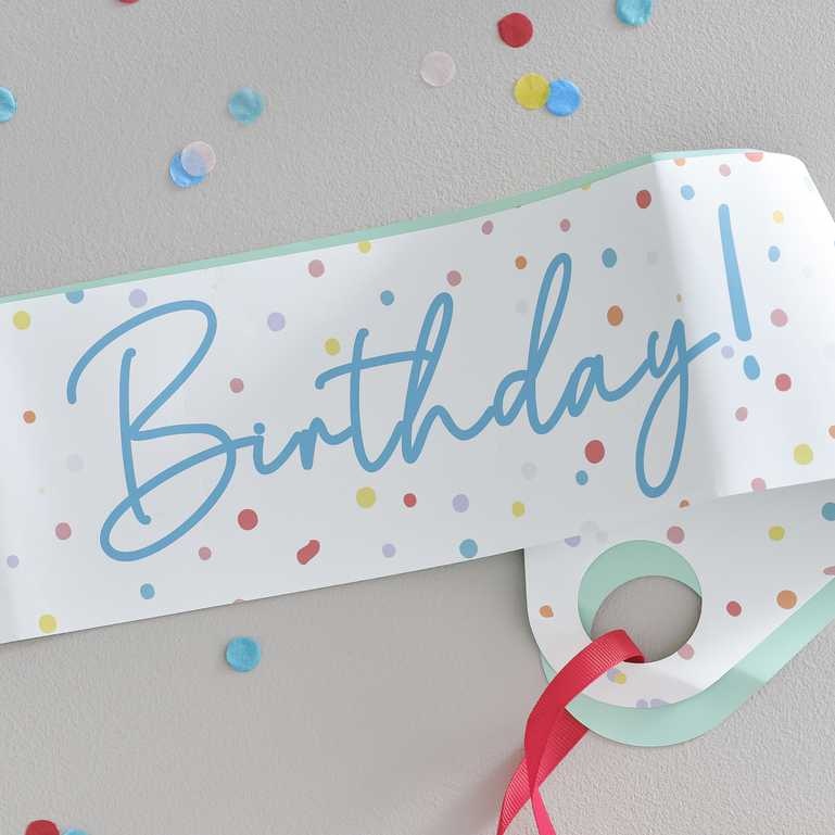 - Birthday Sjerp en Tiara Regenboog- Bestaande uit: 1 sjerp en 1 hoofdband- Afmetingen sjerp: 155 cm lang- Sjerp heeft verstelbare lintsluiting