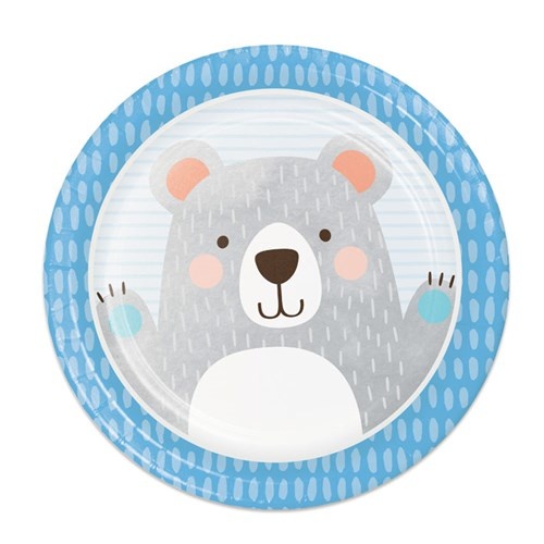 - Blauwe Beren Bordjes- Inhoud: 8 stuks per verpakking- Afmetingen: Diameter 23 cm- Materiaal: Karton
