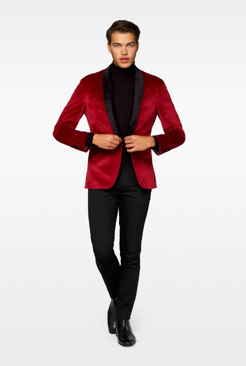 Verfijnd en stijlvol en toch gemakkelijk te dragen; dit bordeauxrode fluwelen smokingjasje met zwarte sjaalrevers is een item dat elke heer in zijn garderobe zou moeten hebben. Het zachte, gladde OppoSuits Deluxe jack is je beste vriend tijdens de feestdagen (en daarna - het is tijdloos).