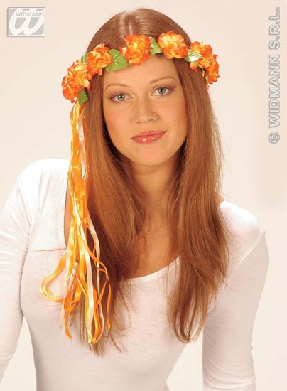Bloemenkroon met lintOmtrek ± 57 cmVoorzien van Oranje/Gele bloemen.