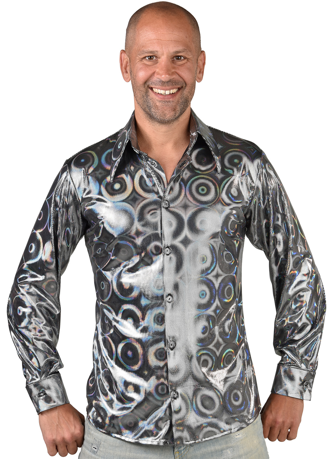 - Blouse Hologram Circkel Zilver Heren- Bestaat uit: Een blouse- Beschikbare maten: Maat S, M, L, XL en XXL- Materiaal: Polyester Exclusief broek!