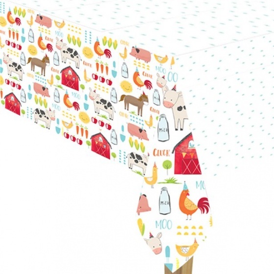 - Boerderij Tafelkleed Happy Farm- Materiaal: Kunstof Folie- Afmeting 137 x 243 cm