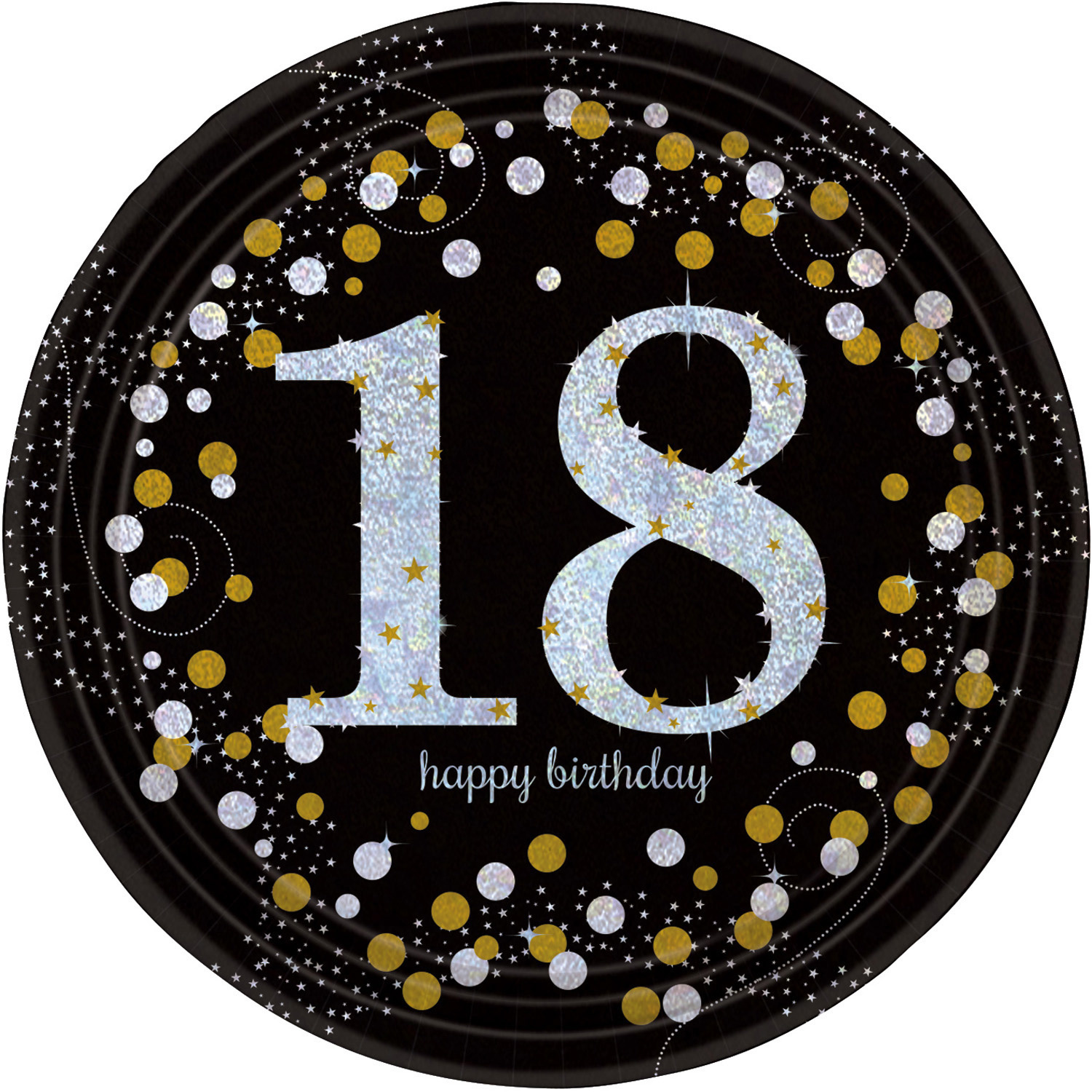 - Bordjes 18 Jaar Sparkling Gold- 8 stuks per verpakking- Afmeting: 23 cm