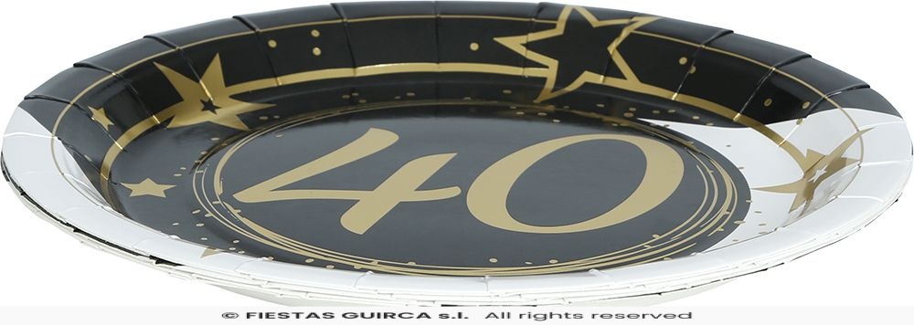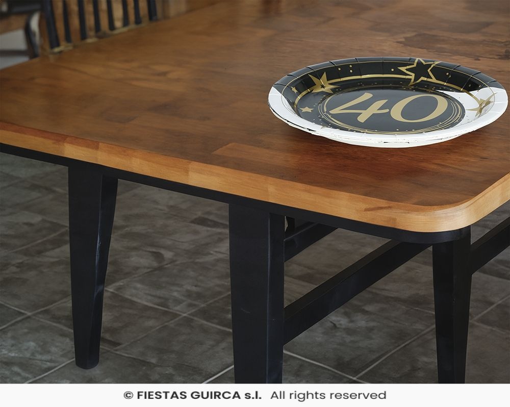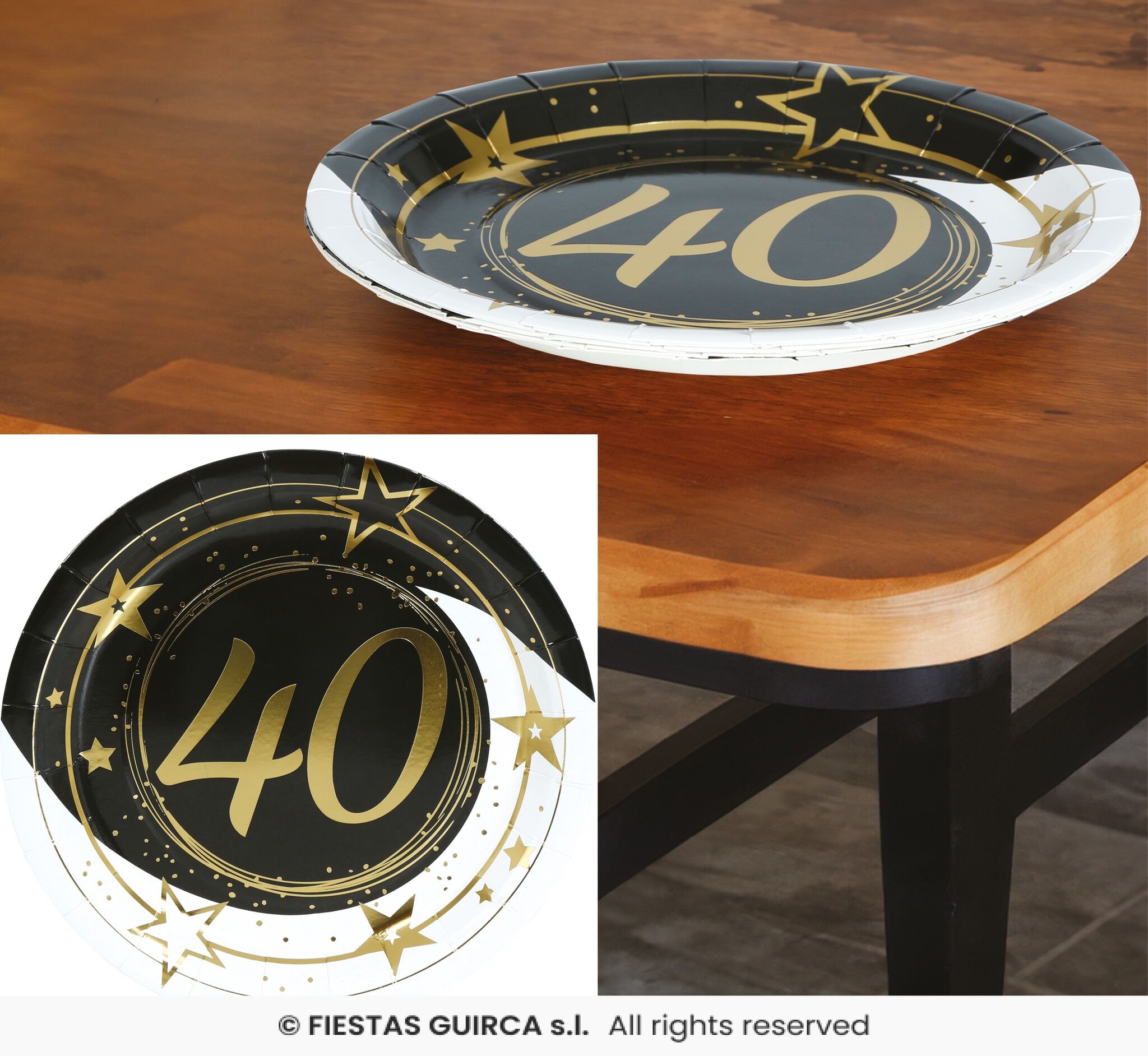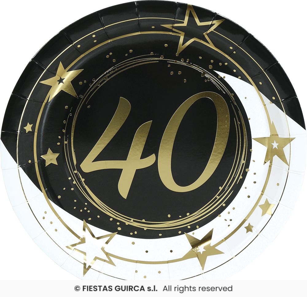 Vier jouw 40e verjaardag in stijl met deze luxe papieren bordjes van Feestbazaar! Het elegante zwart-gouden design met fonkelende sterren en een feestelijk "40" opdruk geeft jouw feesttafel een chique uitstraling. Perfect voor een verjaardagsfeest, jubileum of andere speciale gelegenheid.