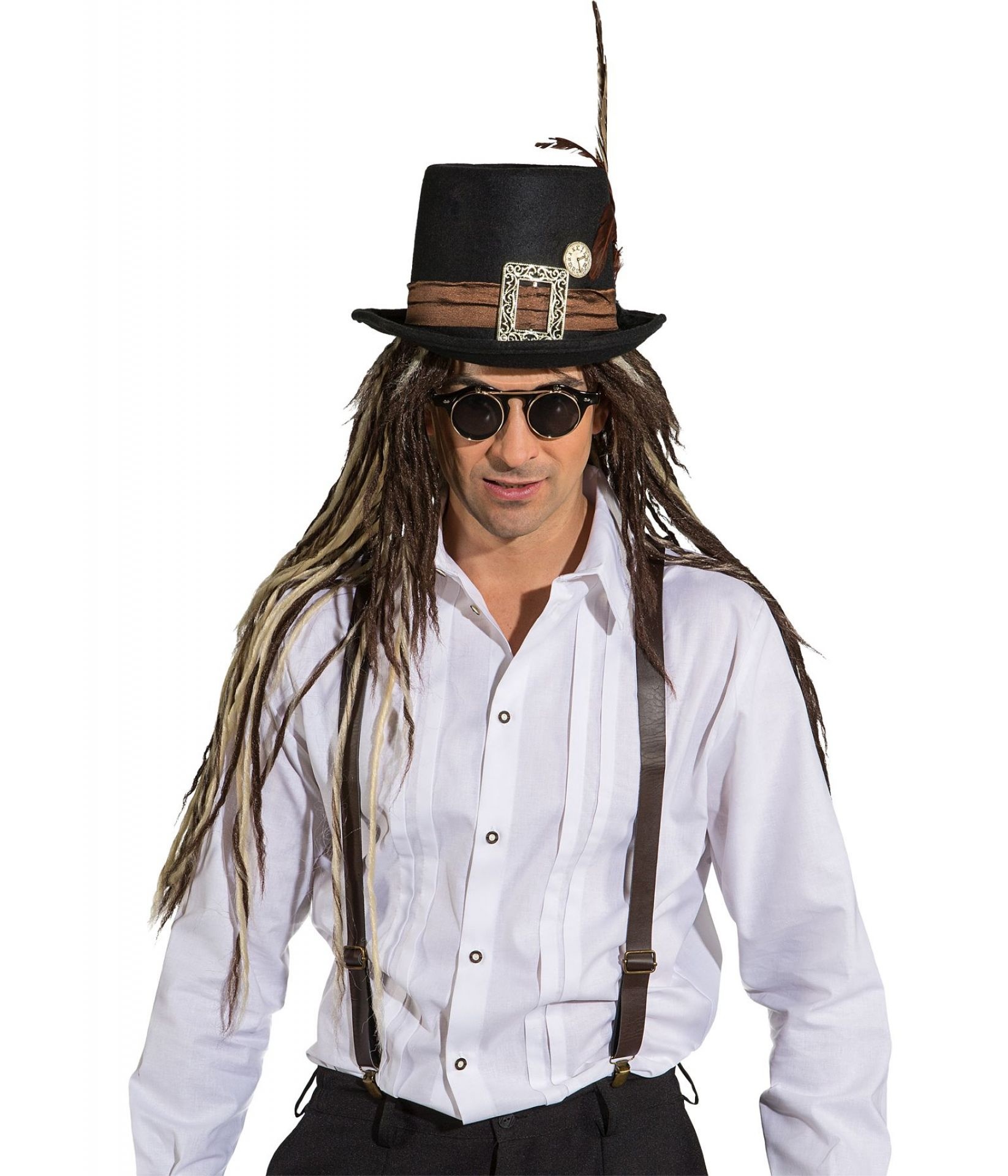 - Bretels Steampunk Bruin Lederlook- Bestaande uit: 1 Paar bretels, leather look- Beschikbare maten: Onesize- Materialen: 100% Polyester