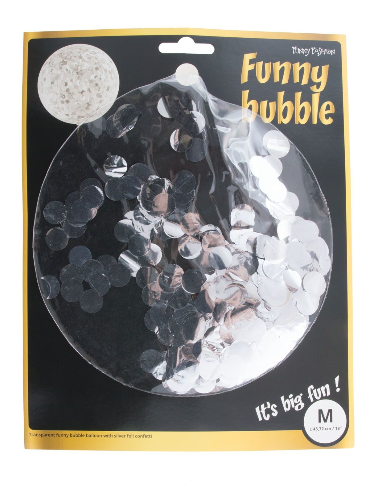 - Bubbel ballon met zilveren confetti - Doorsnee ± 45 cm - Materiaal ballon: Plastic