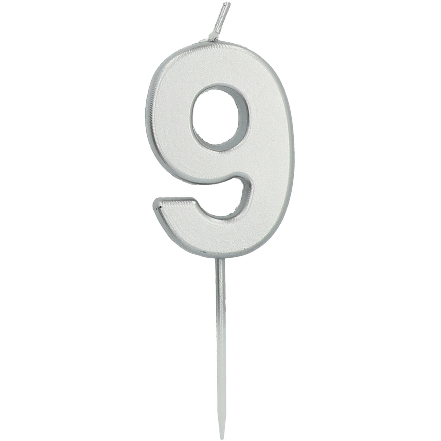 - Cijferkaars '9' Zilverkleurig 5cmDeze kaars is ongeveer 5 cm groot. Inclusief prikker is de kaars ongeveer 8 cm. Het artikel is gemaakt van wax.