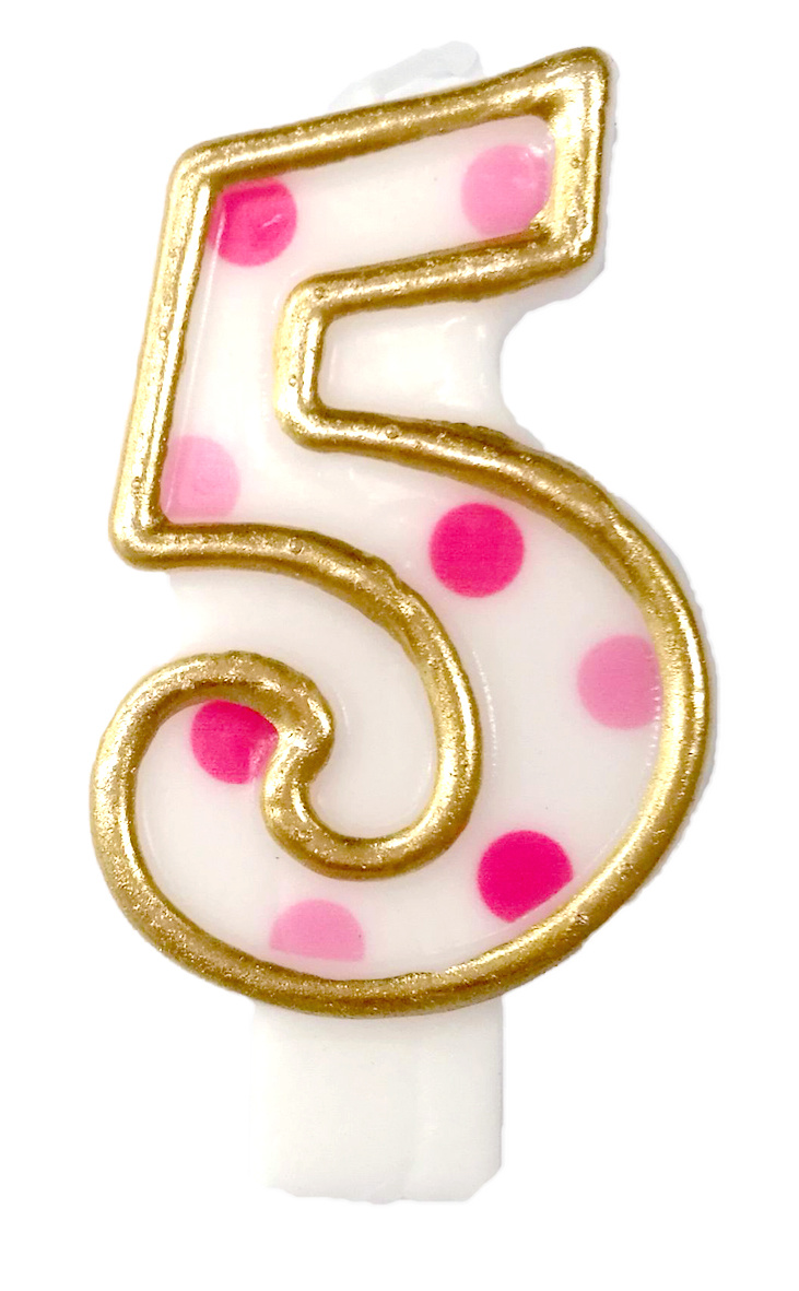 Cijferkaars roze '5' gespikkeldHoogte ± 6cm