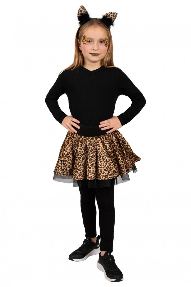 - Cirkelrok Panter meisjes- Materiaal: 100% Polyester- Beschikbare maten: 116 t/m 164Uitgebreide informatie rok:- Elastieken tailleband- Tulle onderrok