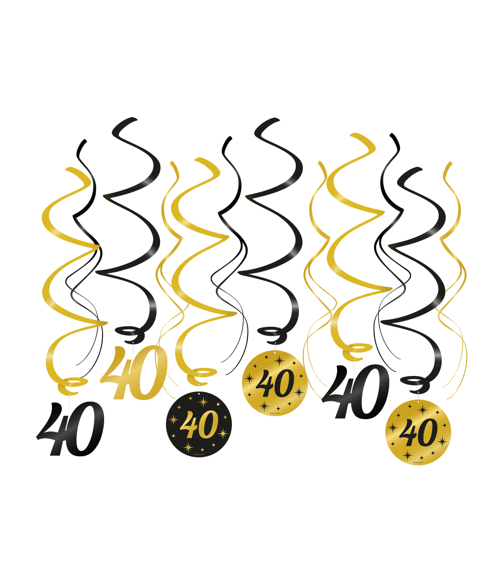 - Classy Party Swirls 40 Jaar- Aantal: 12 stuks per verpakking- Materiaal: plastic en stevig papier- Afmeting: ±70cm lang, diameter ±14cm