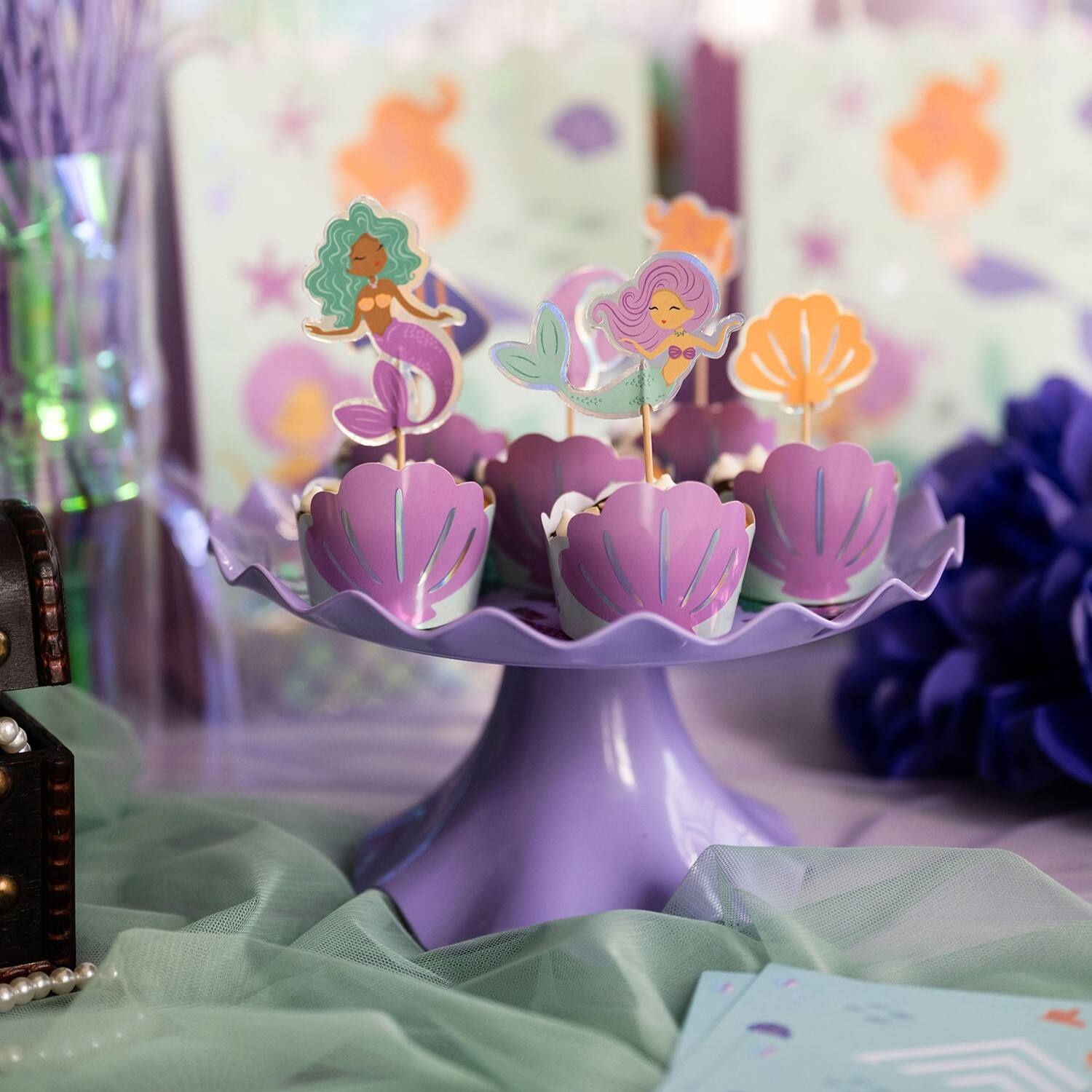 - Cupcake Decoratie set Zeemeermin magic - Bestaande uit: 6 wikkels / 6 prikkers- Materiaal: Stevig papier / karton
