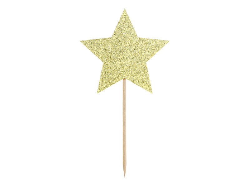 Cupcake toppers Gouden Sterren Glitter6 stuks in verpakkingLengte ± 11,5 cm