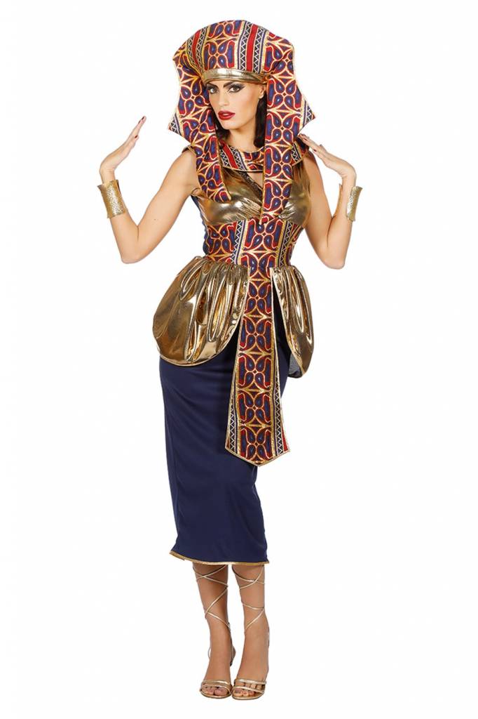 Een mooi kostuum voor een 1001 nacht feest! De donkerblauwe jurk is gemaakt van een fijne stof en afgewerkt met een mooi patroon en gouden details!