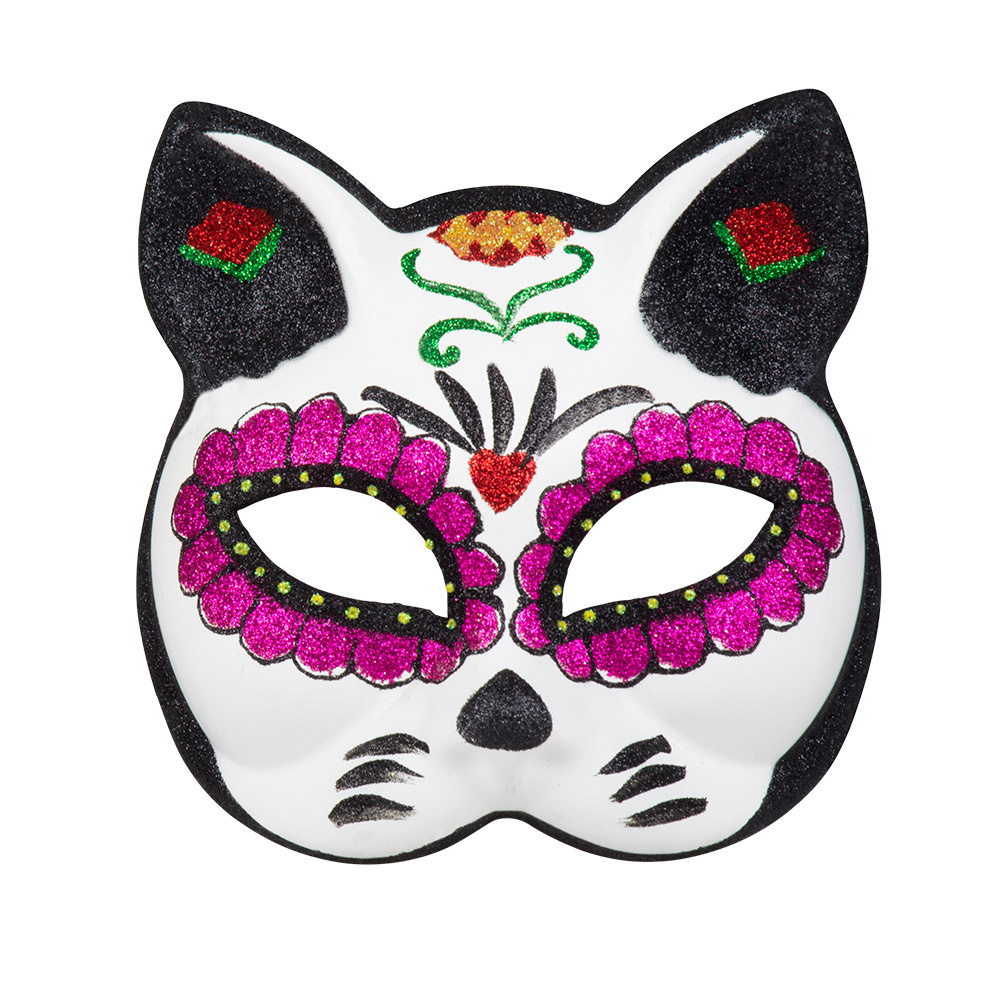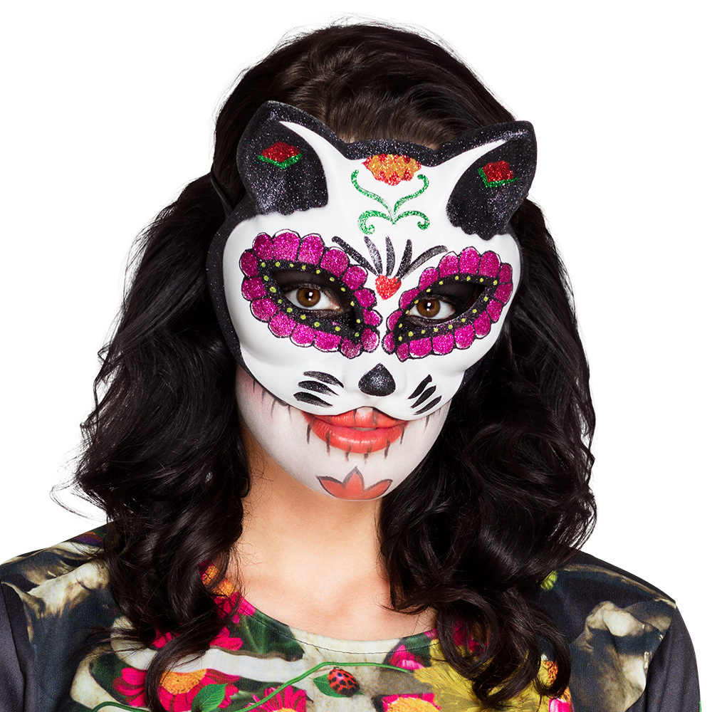- Day Of The Dead Katten Masker- Materiaal: Kunststof- Inclusief elastiek bandje