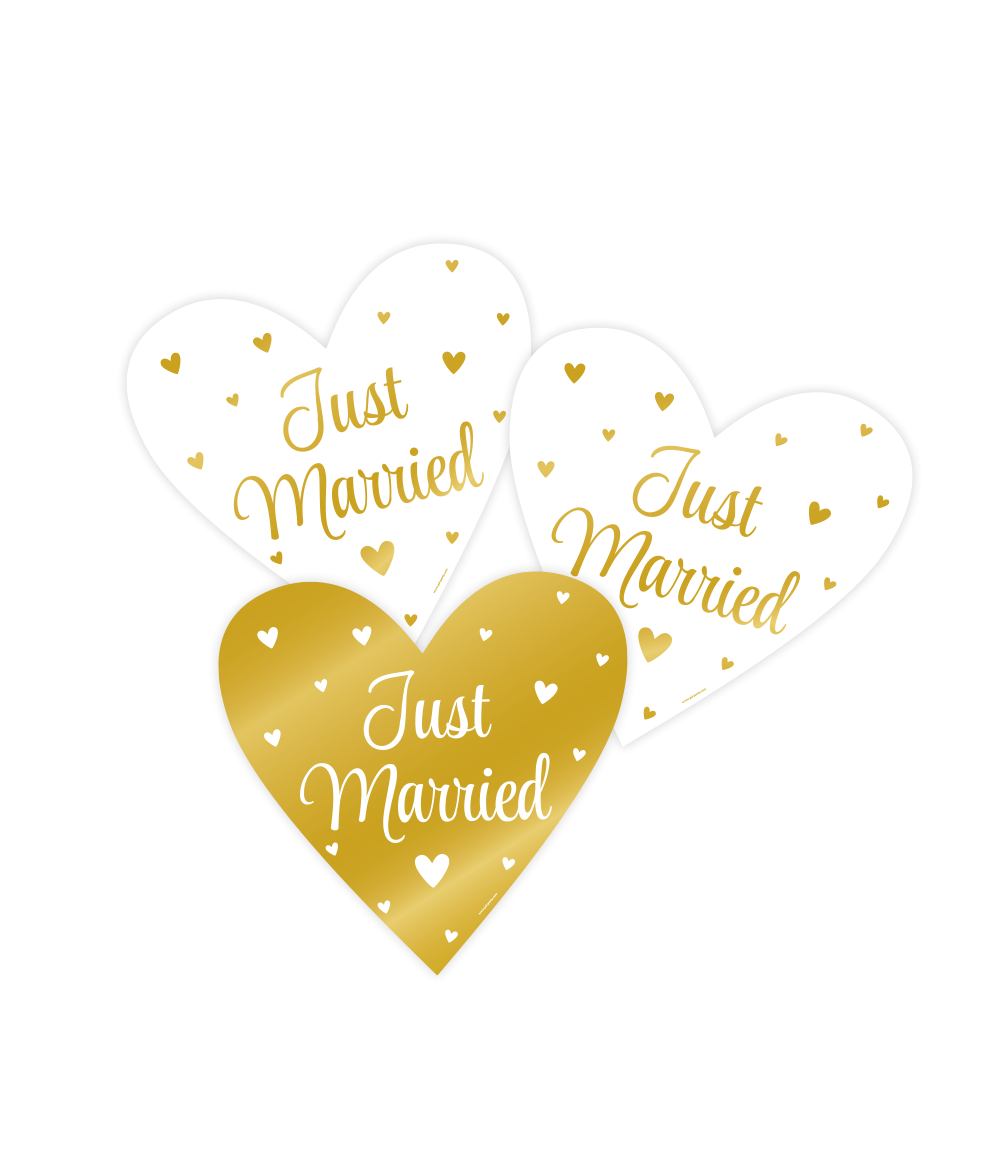 - Decoratie Borden 'Just Married' wit/goud- Bestaande uit: 3 decoratie borden (2x Wit, 1x Goud)- Materiaal: Stevig karton - Afmetingen: 25x25cm