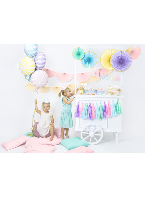 - Decoratieve Rozetten Geel Goud- Bestaande uit: 3 waaiers- Afmeting: 21 cm, 25 cm en 30 cm (doorsnede)- Materialen: Papier en kartonIn de set zitten 3 waaiers van drie verschillende afmetingen. Hang de waaiers voor het raam of tegen een muur. Je vouwt de waaiers eenvoudig open.