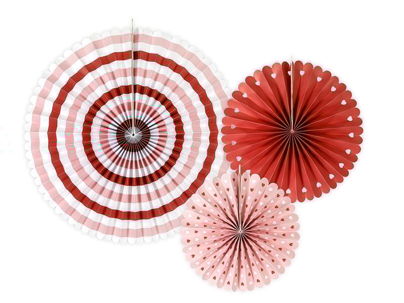 - Decoratieve Rozetten Sweet Love- Afmeting: 21cm, 25cm en 38 cm (diameter)- Materiaal: Stevig karton