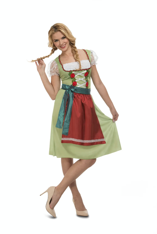 - Dirndl Jurk Anouchka Lang- Beschikbare maten: Maat S, M/L en XL- Bestaande uit: Jurk met schort, blouse en kanten mouwtjes zitten vastgenaaid aan de jurk.- Materiaal: Polyester