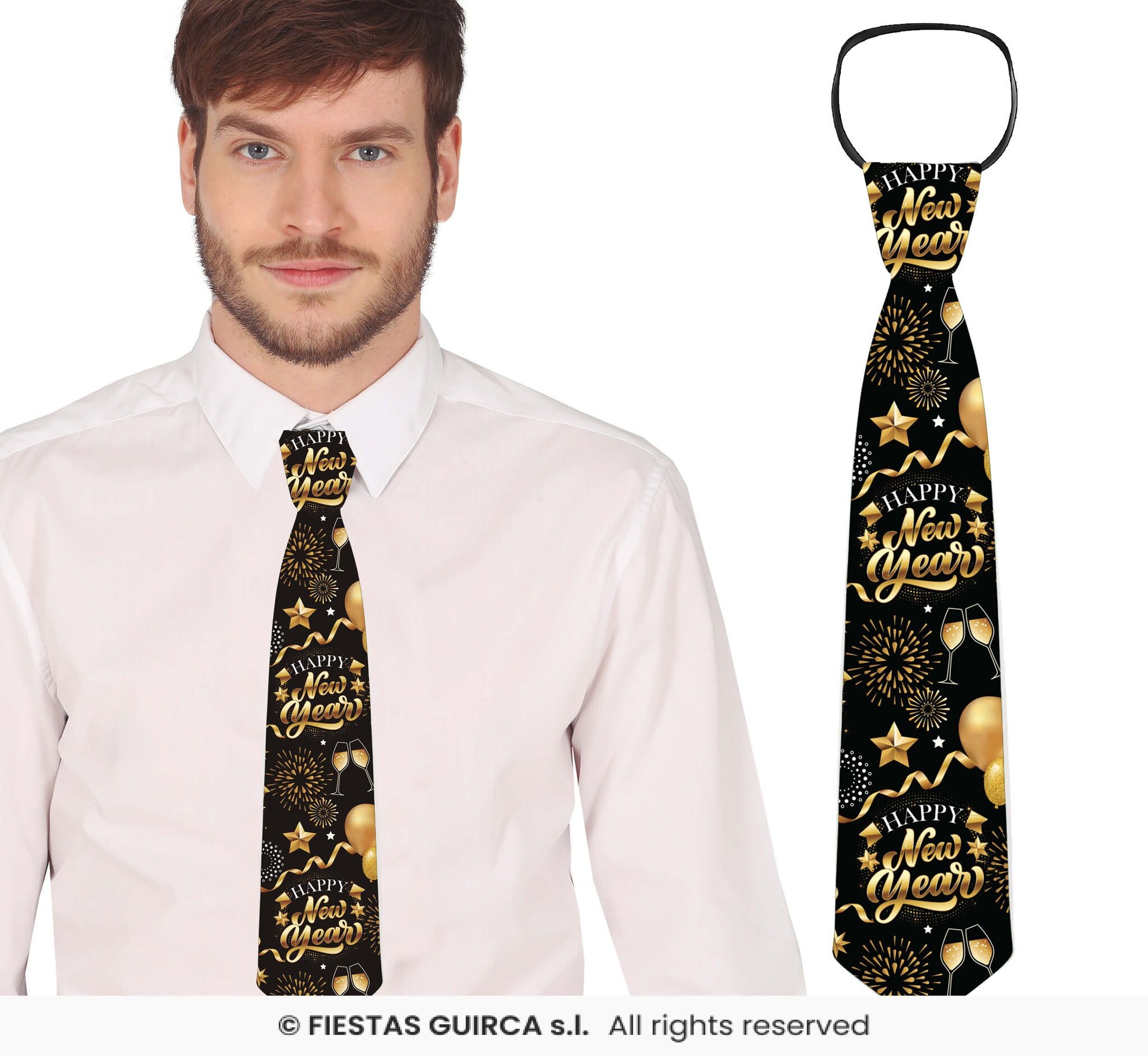 Geef je feestoutfit een stijlvolle upgrade met de Elegante Nieuwjaar Stropdas in Zwart en Goud van Feestbazaar! Deze luxe stropdas is het perfecte accessoire voor een onvergetelijke oud-en-nieuwviering. Het klassieke zwarte design, gecombineerd met schitterende goudaccenten, zorgt voor een chique en feestelijke uitstraling die perfect past bij de jaarwisseling.