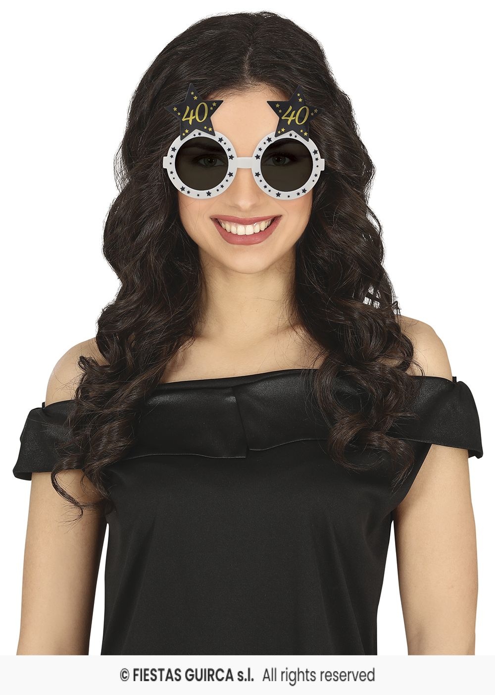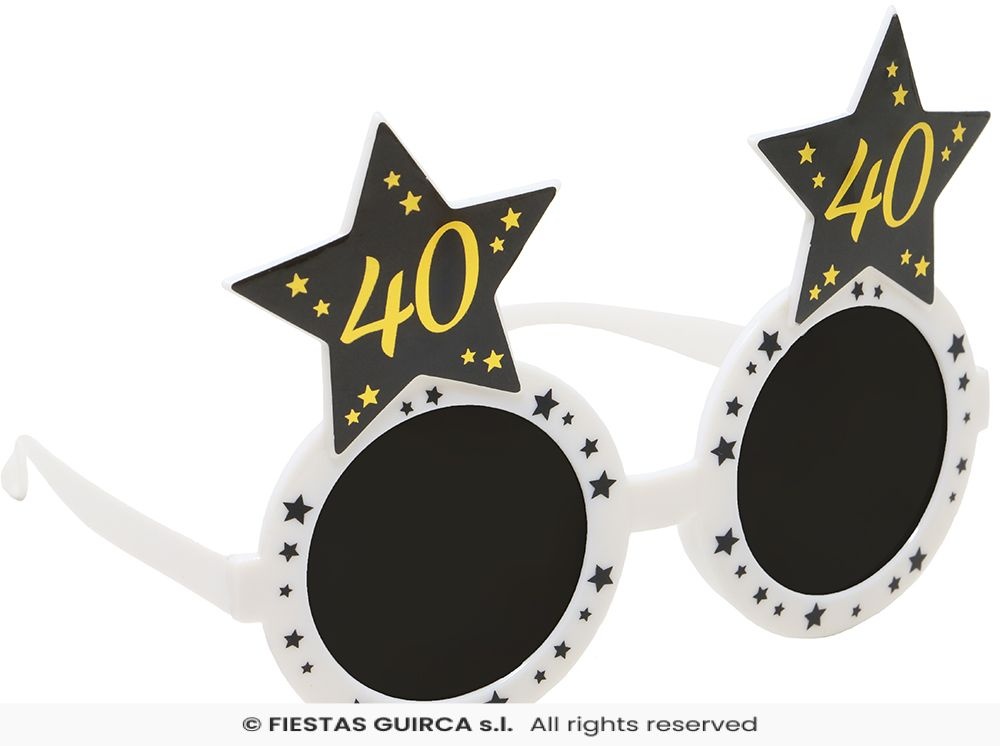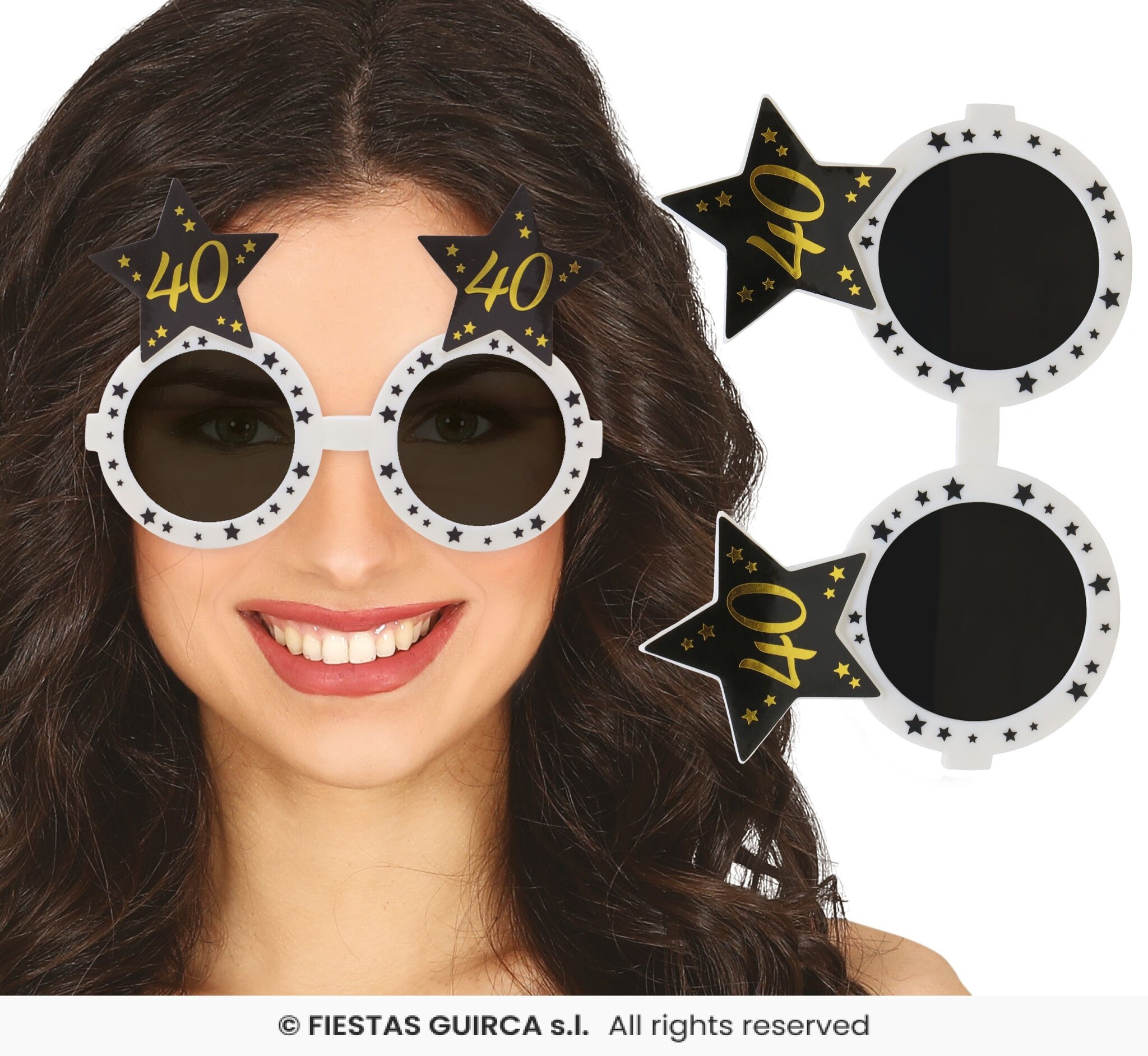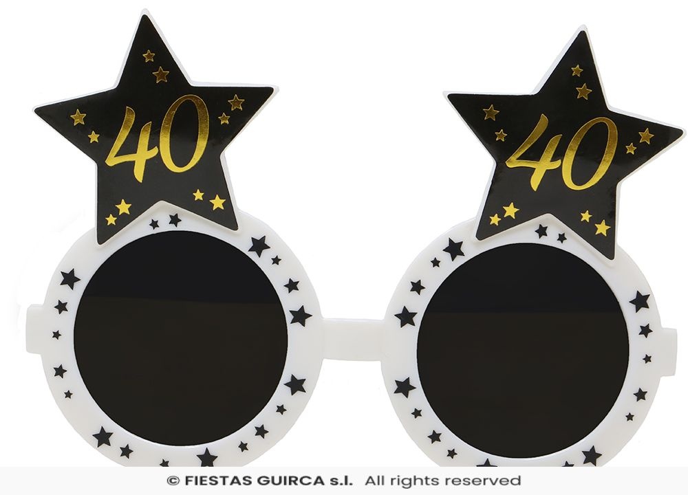 Vier je 40e verjaardag in stijl met deze feestelijke bril van Feestbazaar! Met zijn opvallende zwart-witte design, gouden "40" sterren en ronde glazen, is deze bril dé perfecte accessoire voor een geslaagd verjaardagsfeest. Maak je look compleet en laat iedereen zien dat jij de ster van het feest bent!