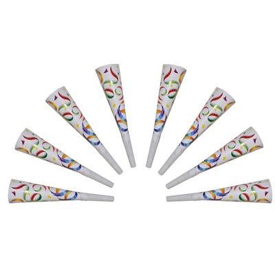 - Feestelijke Party Toeters- Hoeveelheid: 8 toeters- Materiaal: karton en plastic