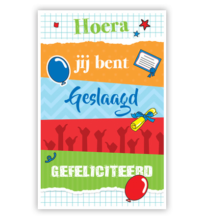 - Feestelijke wenskaart 'Hoera jij bent geslaagd, gefeliciteerd'- Afmetingen: 115 × 180 mm- Materiaal: Karton- Inclusief envelop (Rood)- Kaart kan opengeklapt worden om er een boodschap in te schrijven