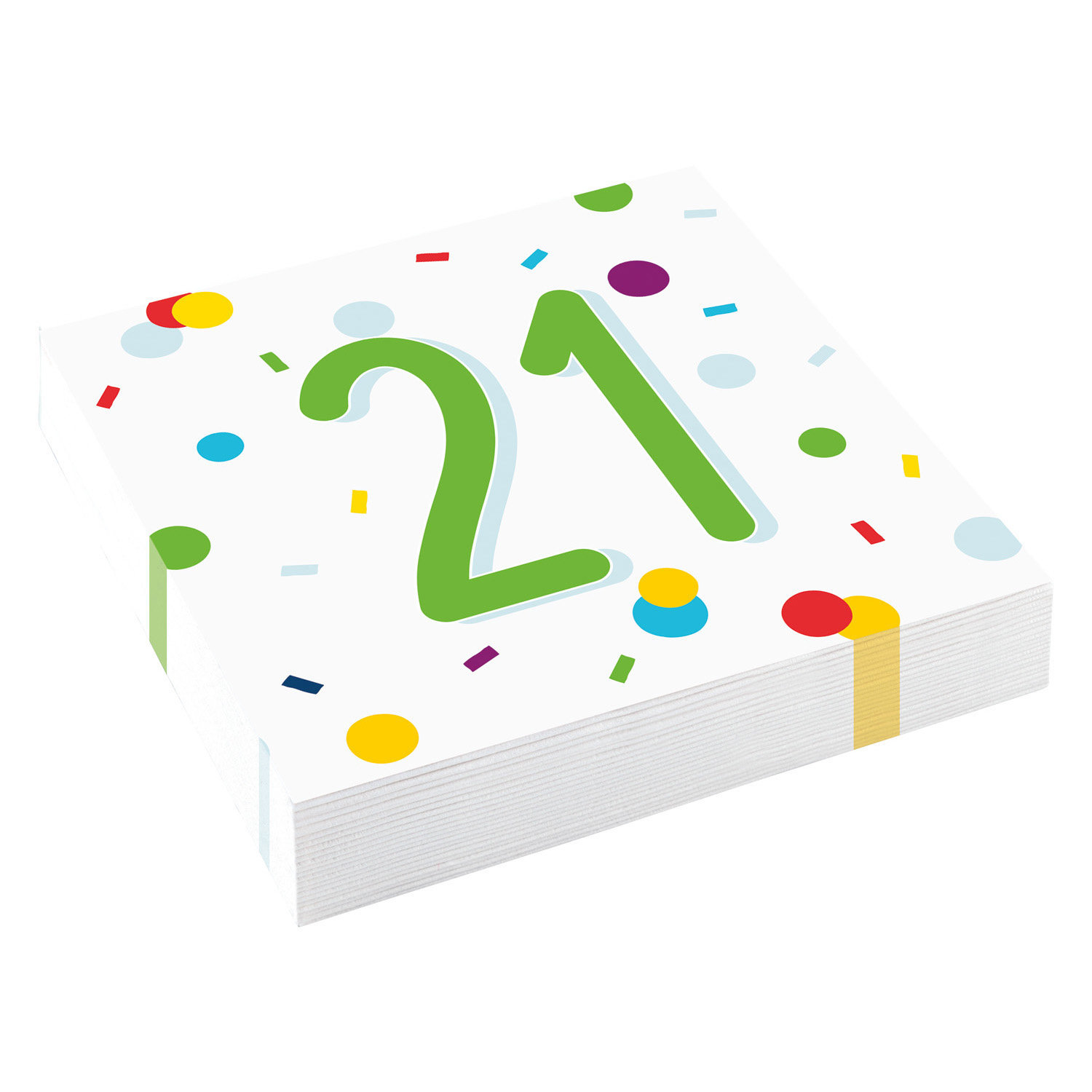 - Feestservetten 21 Jaar Confetti (20st)- 20 stuks per verpakking- Afmetingen: 33 x 33 cm- Materiaal: Papier