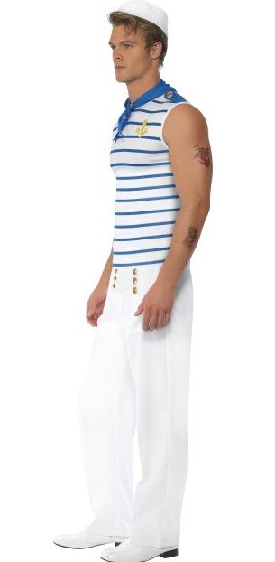- Fever Franse Sailor kostuum bestaande uit, Shirt, Broek en blauw Sjaaltje- Beschikbare maten: M en LExclusief hoedje!