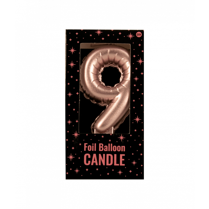- Folie Ballon Kaarsje Cijfer '9' Rose Goud- Inhoud: 1 kaars per verpakking- Afmetingen: Lengte 7cm