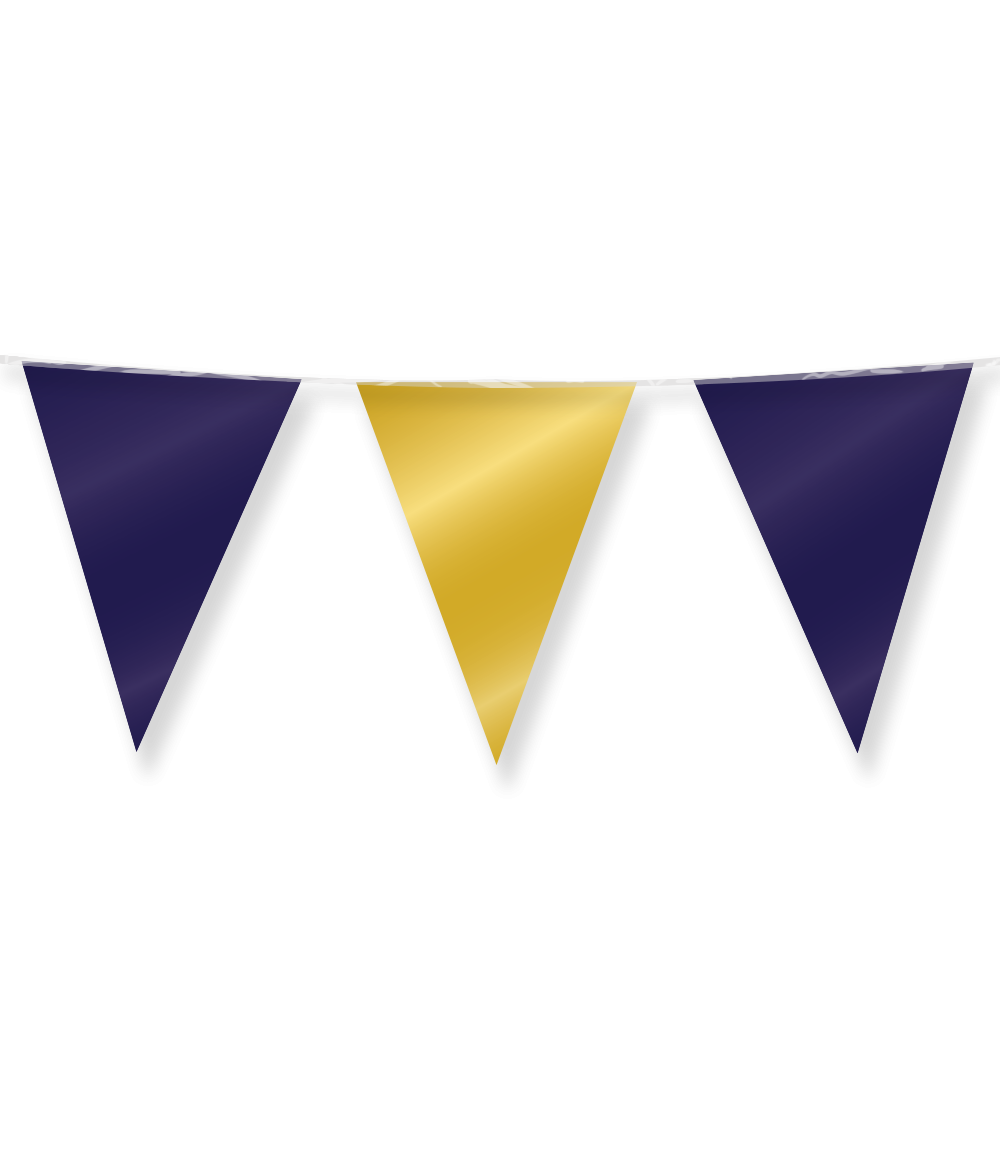 - Folie Vlaggenlijn Donkerblauw/Goud- Lengte: 10 meter- Materiaal: Folie