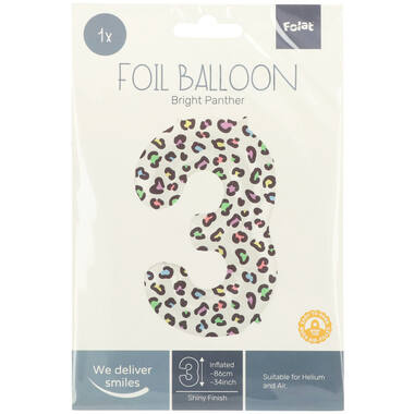 - Folieballon Cijfer 3 Wit Met Panterprint