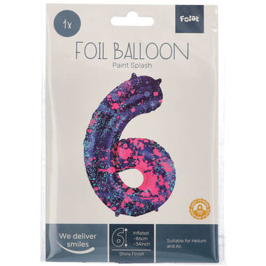 Folieballon Cijfer 6 Paint Splash Neon (86cm)